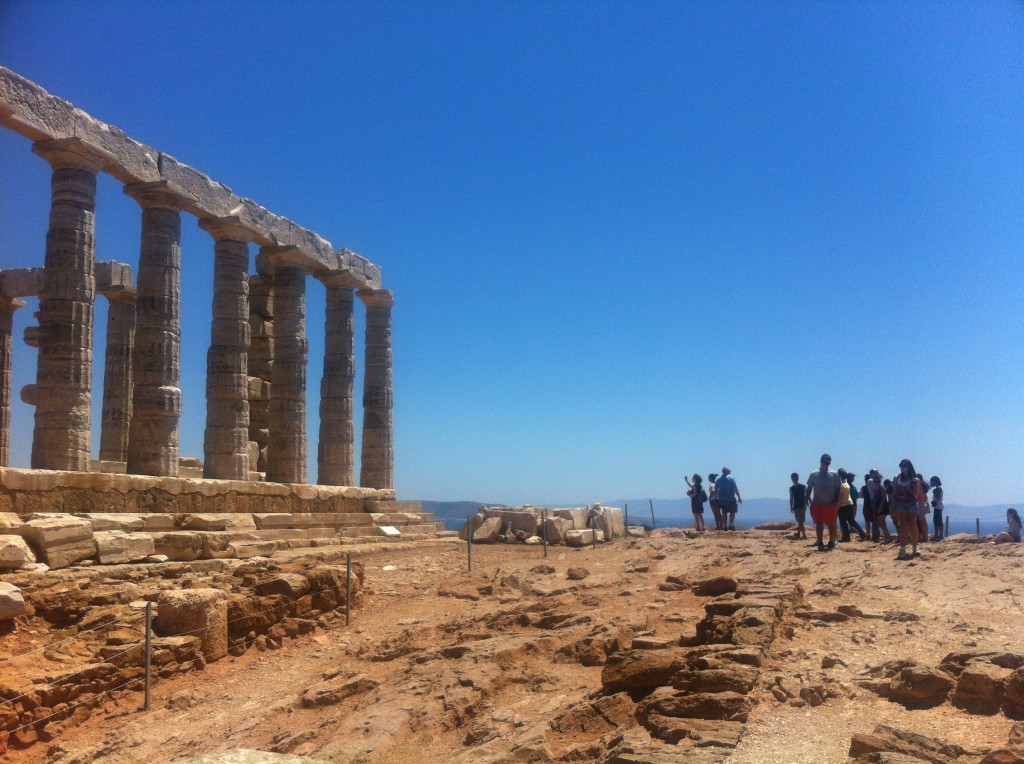 After Thorikos we headed to Cape Sounio. Now this is a truly amazing place. The Cape is surrounded by water on all sides, except for the small stick of land that keeps it attached to the coast. On the crest of the Cape is the Temple of Poseidon. From this Temple you can see all of the ships that pass in and out of the ports surrounding Athens. In ancient times, a ship would depart from port and then stop at the Temple. The shipmates would pray at the Temple and likely make a sacrifice or give a gift to the God in order to ensure a safe journey across the Mediterranean. Out of all the places we have been in and around Athens, this is my favorite spot. The wind is constantly blowing and you can feel the presence of something powerful on the Cape.
